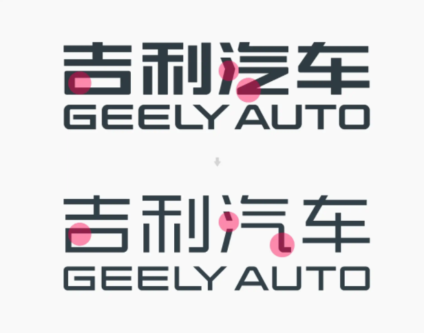 除了圖形符號的創(chuàng)新設(shè)計,吉利還更新了品牌字標(biāo)和品牌色。其中字體的設(shè)計更純粹,和其新的圖標(biāo)一樣,中英文字體在保留原始字形的前提下,讓筆畫變得更細(xì),還將「汽」字連在一起的「氵」分開,使其疏密有序,更利于閱讀。