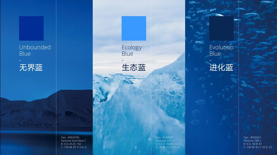藍(lán)色一直以來也是吉利品牌最核心的識別色彩,此次更新中,吉利的藍(lán)色并沒有像上圖中列舉的那樣將顏色提亮,而是從一個全新的角度出發(fā),引入了源自孕育生命的海洋以及浩瀚的宇宙星空的全新的品牌色——無界藍(lán)(Unbounded Blue)。 顧名思義,無界,沒有界限、不拘束縛。意味著新時代的吉利,將打破傳統(tǒng)思維的束縛,以無邊界的創(chuàng)想探索未來,以科技引領(lǐng),不斷突破自我,釋放無限潛能。