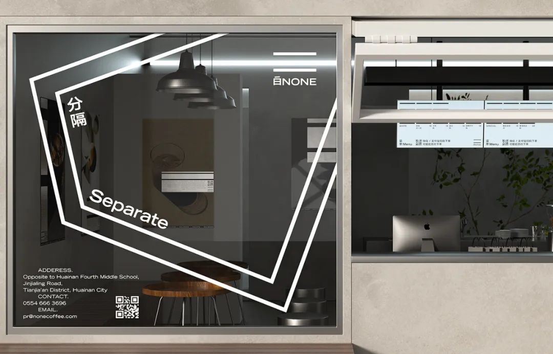 白咖啡,“NONE”也是"NO ONE"。我們位于淮南四中對(duì)面。我們以一條馬路所帶來的分隔為概念:一條馬路隔開的不僅是人和人,還是不同的時(shí)間、不同的生活、不同的感受。