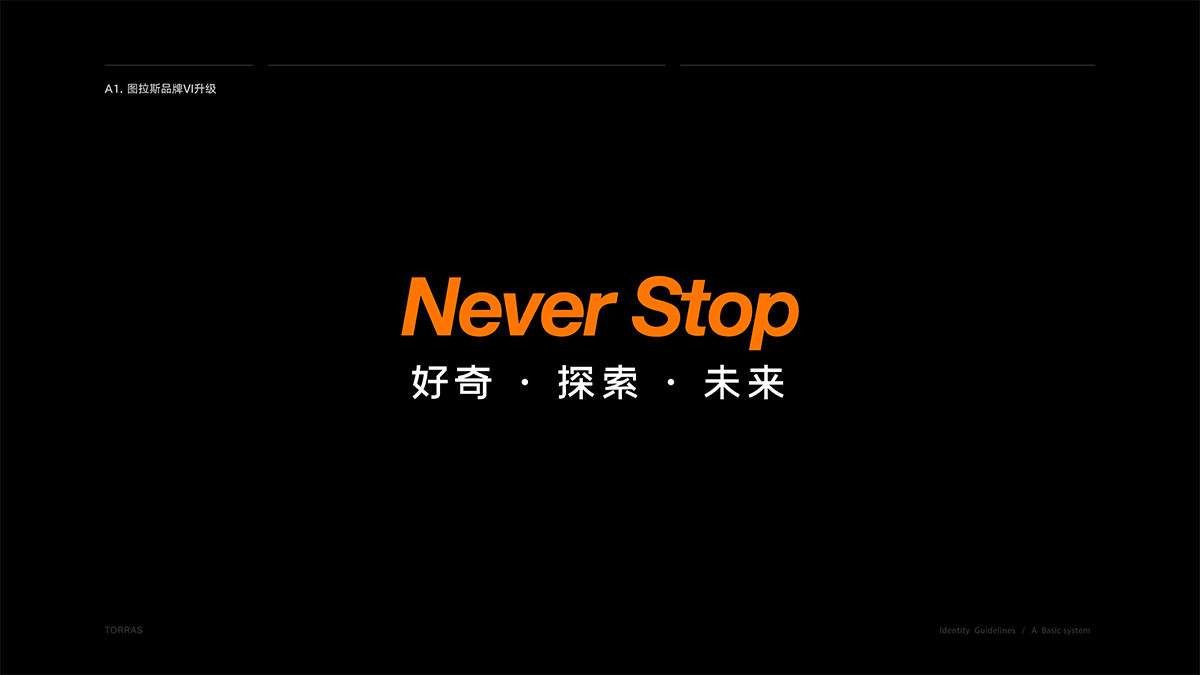近日,圖拉斯對自己的品牌VI進行全面升級,LOGO、中英文字體以及品牌色彩都有明顯提升。圖拉斯將創(chuàng)立以來一直堅持的“好奇、探索、未來”的品牌理念進行了更全面、更深入的解讀。延伸出「Never Stop」的品牌精神,并融入在本次品牌VI煥新升級中。