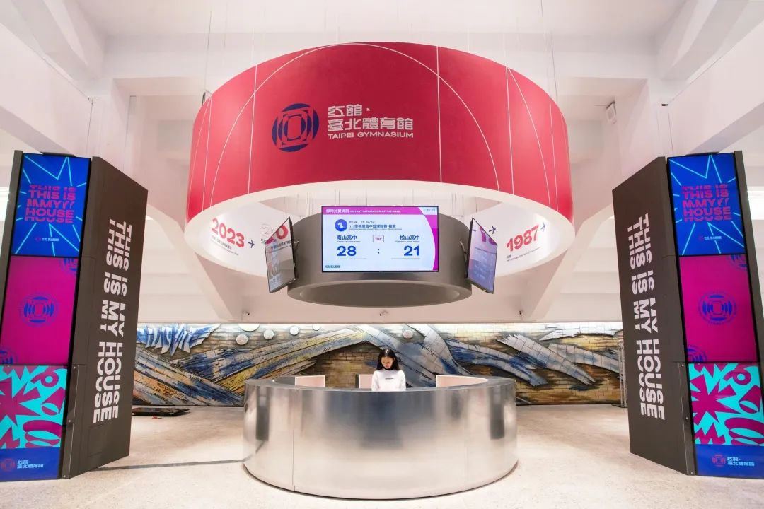 臺(tái)北體育館空間再設(shè)計(jì)來(lái)自無(wú)有設(shè)計(jì),改造工作結(jié)合了新標(biāo)志的造型。入口新增設(shè)同心圓結(jié)構(gòu)的服務(wù)臺(tái)與無(wú)障礙柜臺(tái),同時(shí)增加設(shè)數(shù)字面板與加強(qiáng)溝通資訊設(shè)計(jì),包含統(tǒng)一的形象視覺(jué)、場(chǎng)館形象動(dòng)畫的播放以及現(xiàn)場(chǎng)賽事資訊,讓前來(lái)比賽的選手與民眾,走進(jìn)場(chǎng)館就可找到所需訊息。