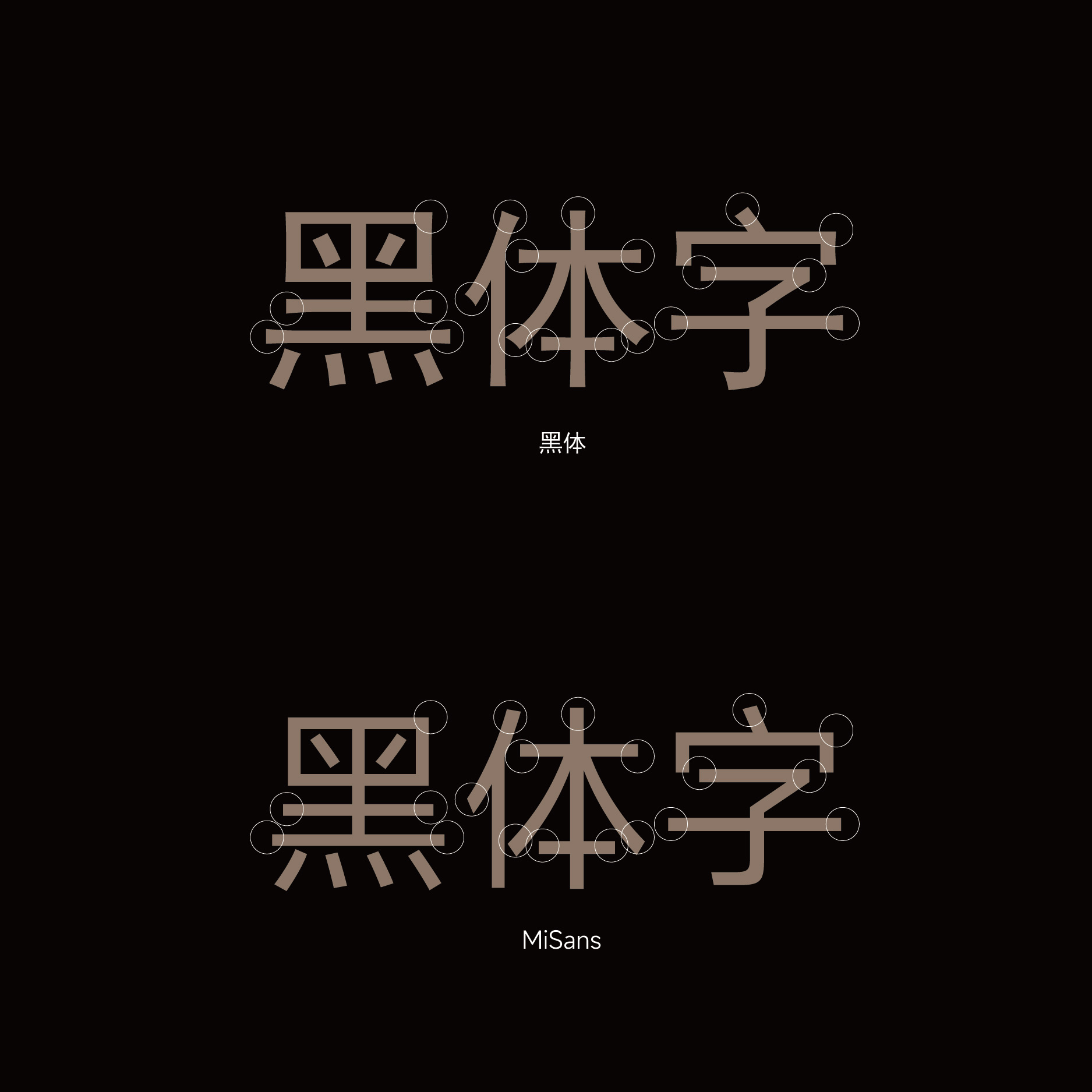 黑體在傳統(tǒng)印刷工藝時期,設計上還有類似襯線的元素存在,設計者因為印刷的時候字的四周容易著墨少等原因而對筆畫端頭采用了喇叭口設計,進行視覺強調。隨著近幾十年技術的發(fā)展,現(xiàn)代激光和噴墨印刷代替了傳統(tǒng)工藝,并且黑體大量運用于視網(wǎng)膜高清顯示技術中,真正的漢字黑體逐步替代老式的裝飾化黑體。黑體更加幾何化,呈現(xiàn)現(xiàn)代感,視覺平衡勻稱,因此很多品牌的標準字都是基于黑體改進設計的。